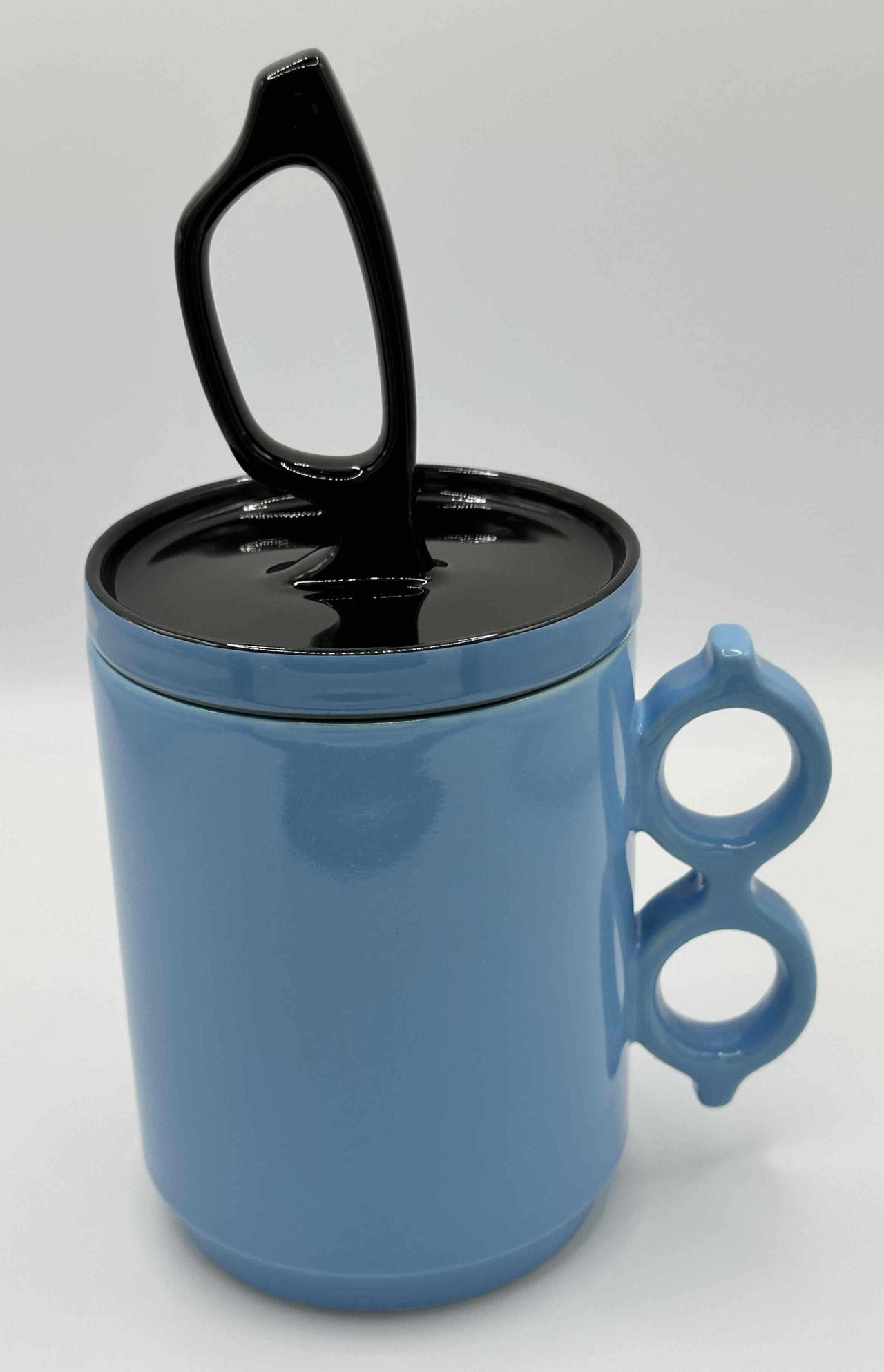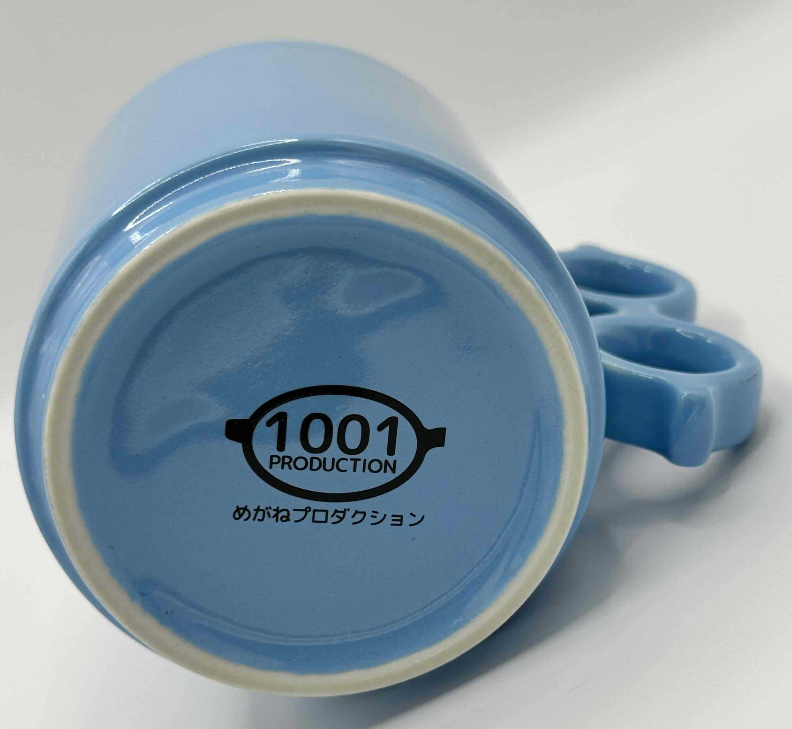 ハンドルはかわいい眼鏡型、蓋は黒縁眼鏡が半分飛び出したデザインとなっており、
